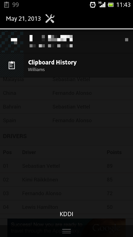 สามารถเปิด app นี้ในเวลาใด ๆ จากแถบการแจ้งเตือน หน้านี้ App หลักคือประวัติศาสตร์คลิปบอร์ด สามารถวางข้อความใน app ของใด ๆ หลังจากที่คัดลอกข้อความจากมัน