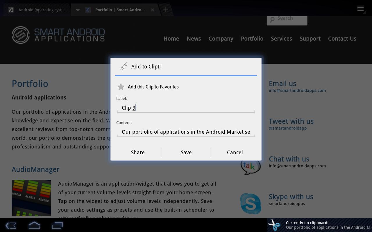ClipIT is the first Clipboard manager for Android phones and tablets, taking multi-tasking on your Android device to a whole different level. Also available for Google TV!