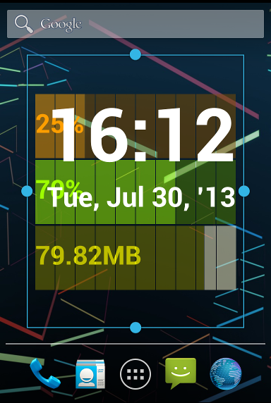 วิดเจ็ตนาฬิกาดิจิตอลการใช้งาน CPU ระดับแบตเตอรี่จะเป็นบวกกับการแสดงผลของพื้นที่หน่วยความจำ