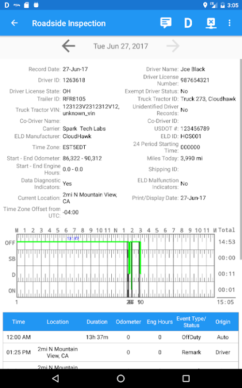 CloudHawk ELD is a powerful but easy to use app that enables drivers of trucks and other long-haul vehicles to track driving and vehicle inspection logs in compliance with FMCSA 2017 ELD Rule.