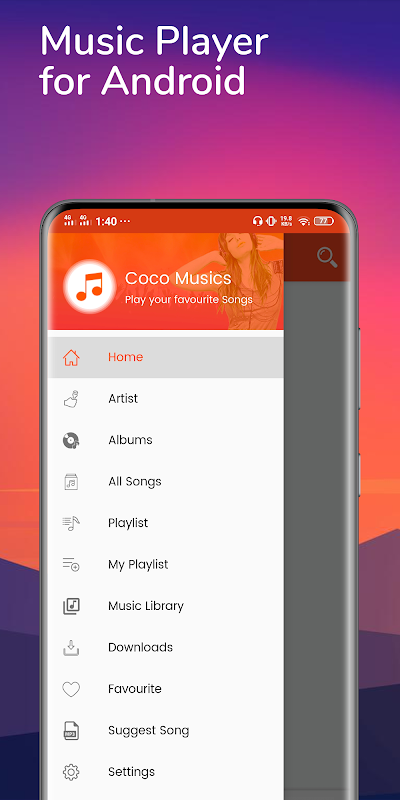 Coco Music Player Free for Android. With unlimited music and new songs, all audio formats supported and stylish design, Music Player provides a playlist a day for you. Browse all and import songs from an android device, listen to music no WIFI needed, you deserve to get perfect offline music app free music for you!