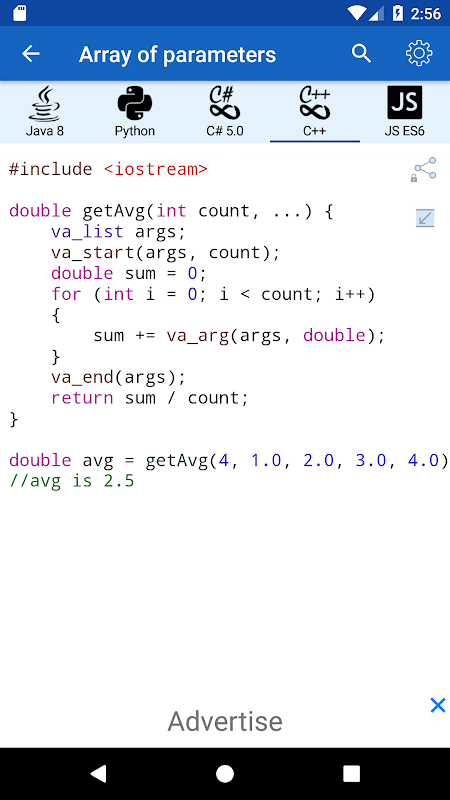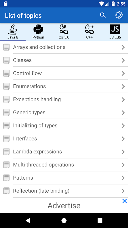 ✓ แอปพลิเคชันนี้เป็นเครื่องมือที่ดีระหว่างการสอบหรือการเตรียมตัวสำหรับการสัมภาษณ์ เนื่องจากมีการอ้างอิงถึงการดำเนินการที่ใช้บ่อยในภาษาโปรแกรมต่างๆ