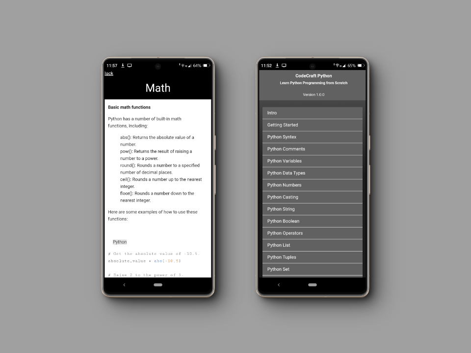 ยินดีต้อนรับสู่ "CodeCraft Python" คู่มือที่ครอบคลุมสำหรับการเรียนรู้การเขียนโปรแกรม Python ตั้งแต่พื้นฐาน! ไม่ว่าคุณจะเป็นมือใหม่หรือต้องการพัฒนาทักษะการเขียนโค้ด แอปนี้คือเพื่อนคู่ใจที่คุณไว้วางใจในการเดินทางสู่การเป็นพ่อมด Python
