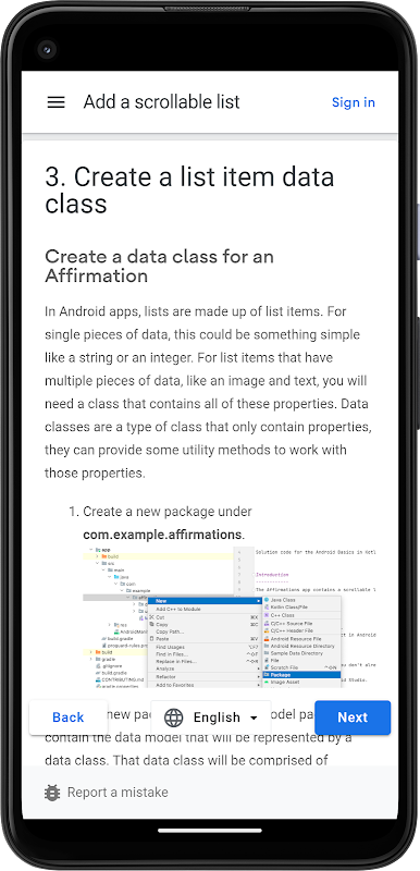 Codelabs: สร้างทุกอย่างที่มอบประสบการณ์การเขียนโค้ดแบบมีคำแนะนำ บทช่วยสอน และลงมือปฏิบัติจริง Codelabs ส่วนใหญ่จะแนะนำคุณตลอดขั้นตอนการสร้างแอปพลิเคชันขนาดเล็กหรือเพิ่มคุณลักษณะใหม่ให้กับแอปพลิเคชันที่มีอยู่ โดยครอบคลุมหัวข้อต่างๆ เช่น Android Wear, G Compute Engine, ARCore และ G API บน iOS