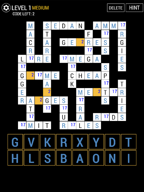 So, your task is to figure out and replace a letter for a code accordingly; letters are suggested at the bottom and limited in 8 letters.