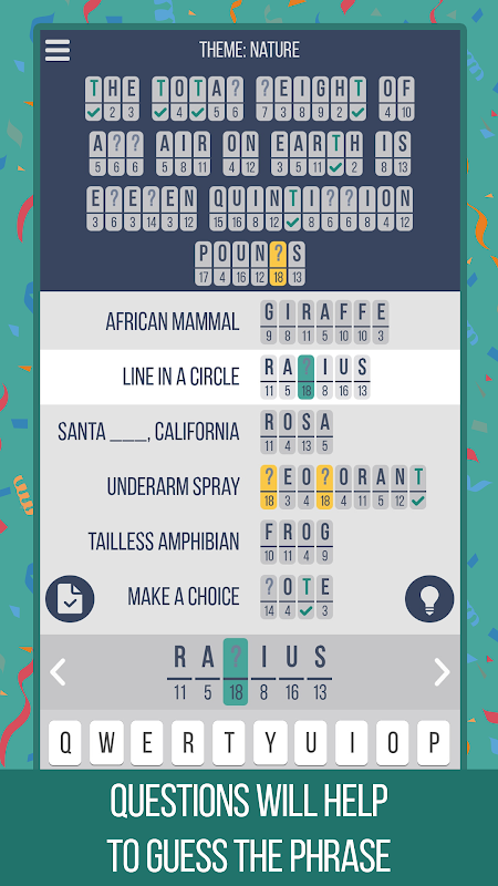 คุณต้องตอบคำถามและเดาคำศัพท์ ตัวอักษรแต่ละตัวของคำศัพท์ที่เดาจะมีรูปร่างของมันเอง รูปร่างนี้จะช่วยให้คุณเดาคำและผ่านด่านต่างๆ พยายามค้นหาข้อเท็จจริงทั้งหมดด้วยการไขปริศนาทั้งหมด