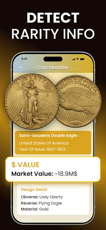 รายละเอียดที่ครอบคลุม: แอป Coin Identifier ให้รายละเอียดจำนวนมากมายเกี่ยวกับเหรียญ ให้ข้อมูลเกี่ยวกับเหรียญโดยละเอียด