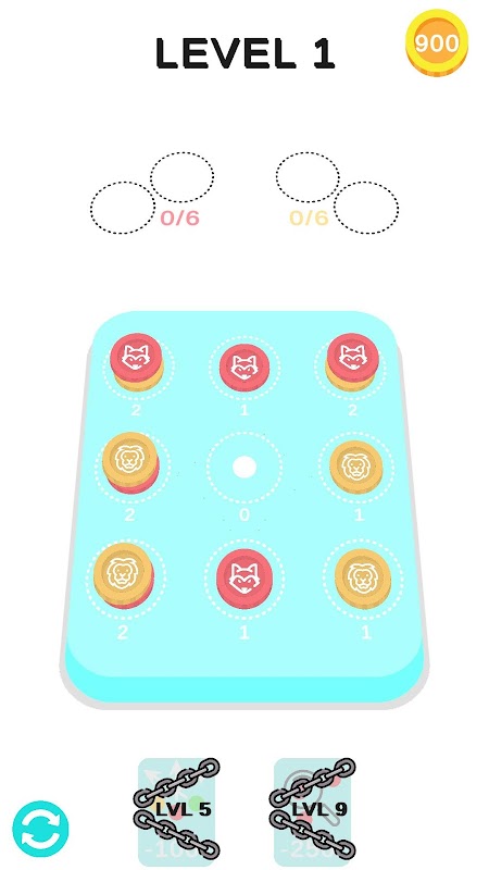 วางเหรียญที่มีสีเดียวกันทับกันเพื่อเคลียร์กระดาน