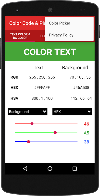 ข้อมูล Color Code Picker : HTML RGB HEX Color Code APK