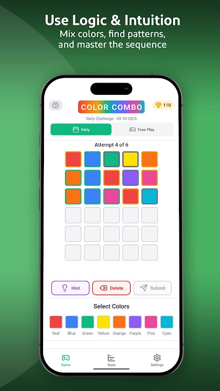 ไขรหัส 5 สีที่ซ่อนอยู่ได้ภายใน 6 ครั้ง ใช้ตรรกะ ค้นหารูปแบบ และฝึกฝนสมองของคุณด้วยปริศนาที่รวดเร็วและน่าพึงพอใจ