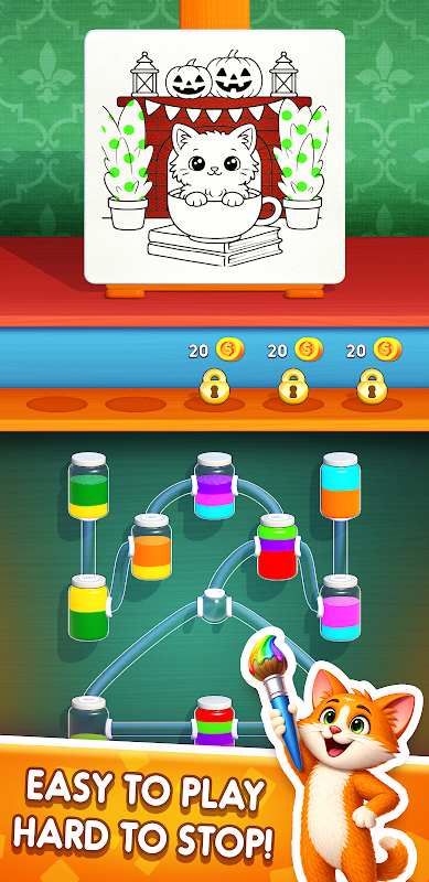 เทสีลงในโหล แก้ปริศนาแสนสนุก และเผยภาพประกอบที่สวยงามทีละขั้นตอน ทุกด่านที่ผ่านจะปลดล็อกภาพน่ารักใหม่ให้ระบายสี!