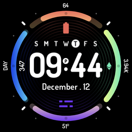 ลักษณะของมัน: เรียบง่าย ไล่ระดับสี วงกลม รวย สีสัน นาฬิกาอิเล็กทรอนิกส์ ผ่อนคลาย