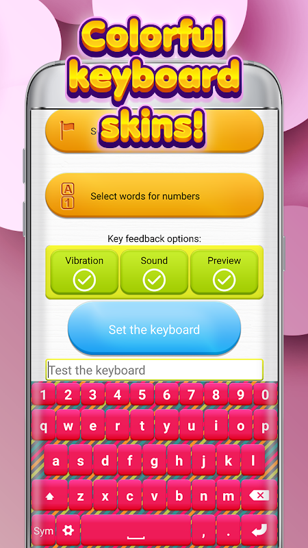 Decorate your keyboard and make it pop! Make bold color combinations and style up your phone! Rainbow themes and colorful keyboards are perfect for trendsetters, so hurry up to customize your device completely free of charge and start texting right now!