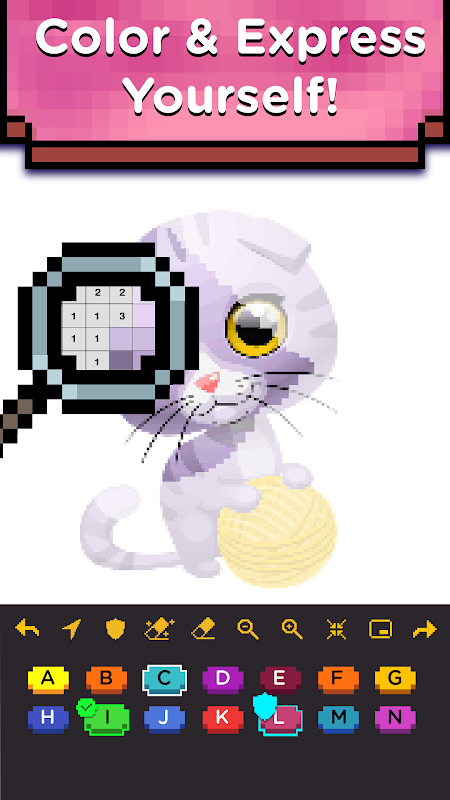 ColorPix: Pixel Art - Color by Numbers Game! app is a color-by-number and color-by-letters app that presents coloring pages with color legends which users fill in pixel by pixel. After you download the Pixel Art Game, you will see lots of greyscaled pictures. These are the patterns for you to color them!