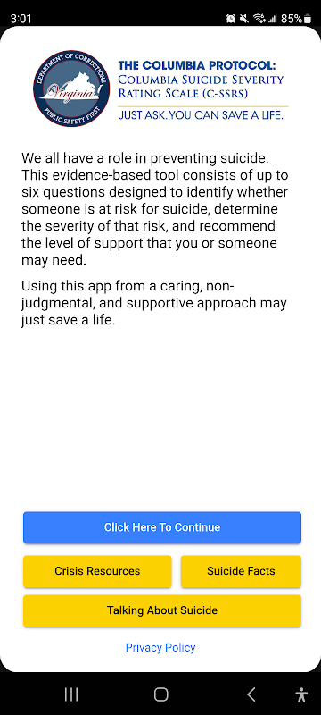 นี่คือแอป Columbia Protocol เวอร์ชันกรมราชทัณฑ์เวอร์จิเนียที่มุ่งเน้นไปที่พนักงานมากขึ้น