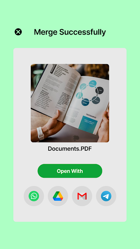 ด้วยแอพ Combine PDF - Merge & Split นี้ คุณสามารถแชร์ไฟล์ PDF ที่แก้ไขแล้วกับเพื่อน ครอบครัว หรือเพื่อนร่วมงานผ่านทางอีเมล บลูทูธ หรือแอพได้อย่างง่ายดาย