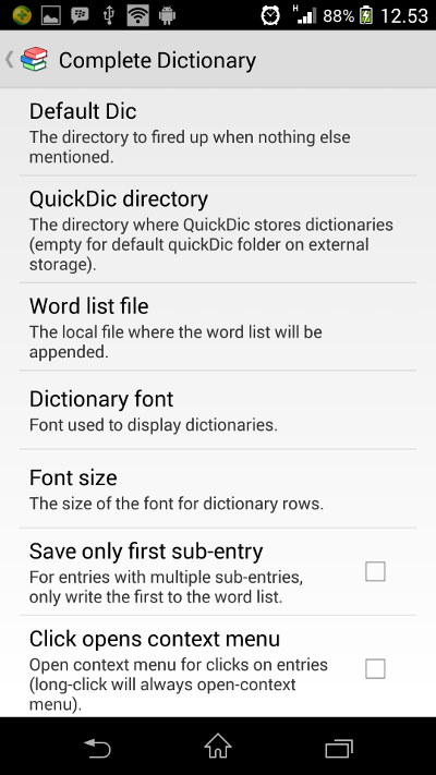 If Complete Dictionary crashes on your device (especially Sony Ericsson devices),