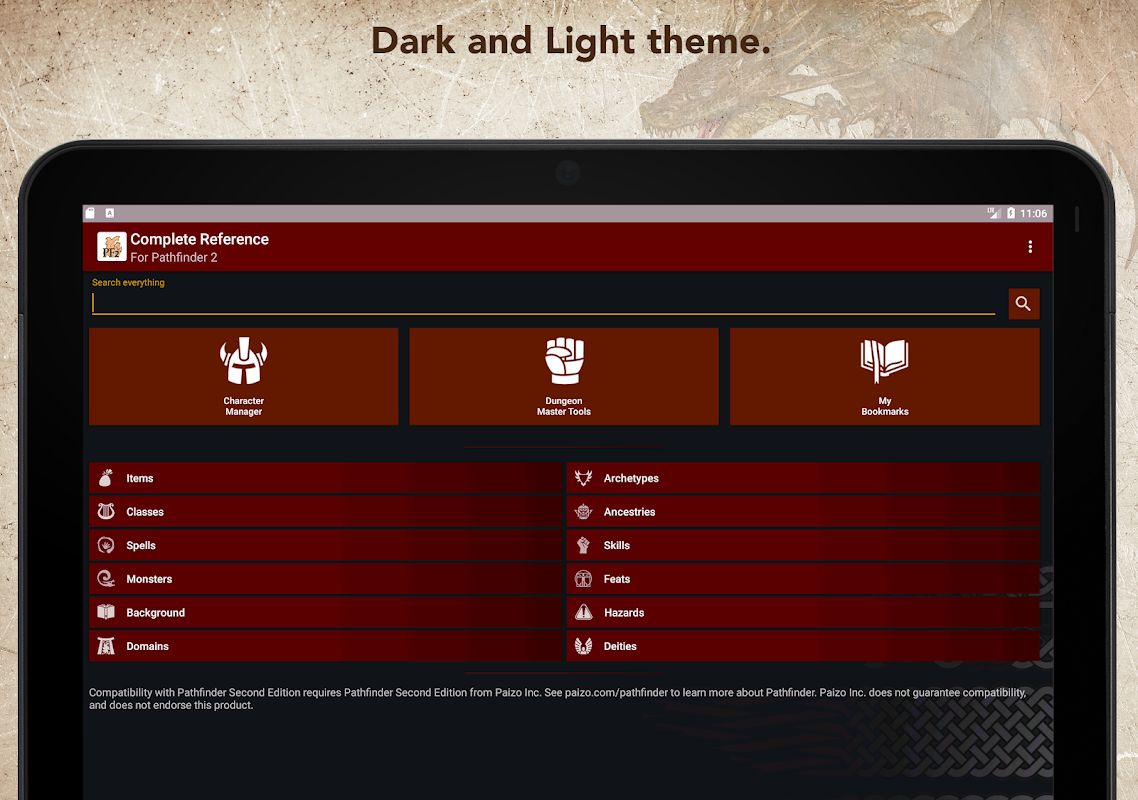 ด้วยแอพอ้างอิงที่สมบูรณ์สำหรับเกมสวมบทบาทบุกเบิกรุ่นที่สองคุณจะมีเนื้อหาทั้งหมดอยู่ในรูปแบบที่สามารถค้นหาได้และสะดวกสบาย