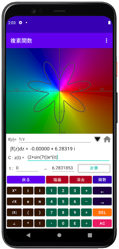 On the basis of the domain coloring method, the app visualize complex functions. By making absolute value of complex number to brightness and making argument correspond to hue, complex functions is drawn on the Gaussian plane. Secondly, app integrates defined function over the path that you draw.