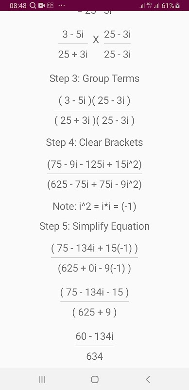 วิธีแก้ปัญหาทีละขั้นตอนสำหรับการดำเนินการเกี่ยวกับจำนวนเชิงซ้อน