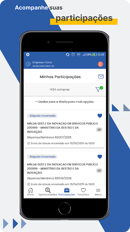 ลงทะเบียนบริษัทของคุณในระบบลงทะเบียนผู้จำหน่ายสินค้าและบริการแบบครบวงจร (Sicaf) โดยระบุหมายเลข CNPJ/CPF ของคุณ ซึ่งจะทำให้บริษัทของคุณสามารถเข้าร่วมในกระบวนการประมูลได้