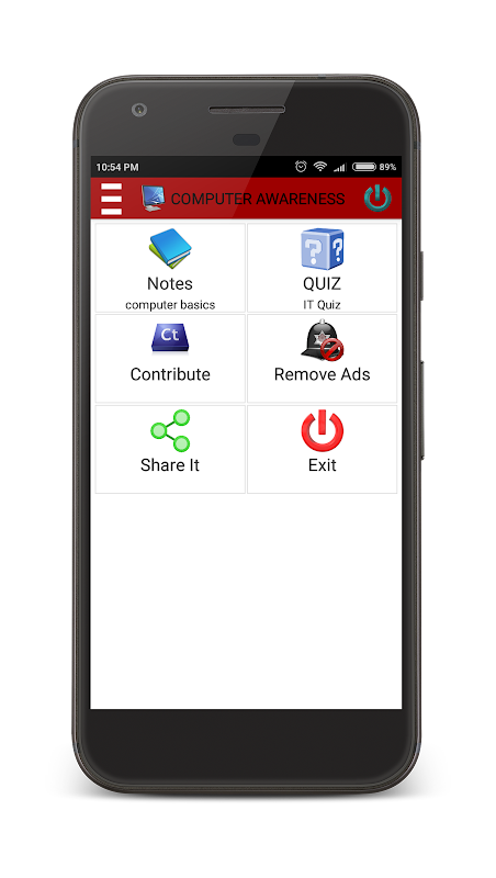 ประมาณ 1000 เลือกคำถามเพื่อเพิ่มความรู้คอมพิวเตอร์ของคุณซอฟต์แวร์ของใช้และสถาปัตยกรรมฮาร์ดแวร์คอมพิวเตอร์ คำถามเหล่านี้มีประโยชน์มากสำหรับการสอบแข่งขันเช่นเดียวกับการปรับปรุงการรับรู้คอมพิวเตอร์ แอปให้ความรู้คอมพิวเตอร์จะจัดได้ดีกับหัวข้อดังกล่าวเป็นข้อเท็จจริงเบื้องต้นเกี่ยวกับอุปกรณ์คอมพิวเตอร์ฮาร์ดแวร์สถาปัตยกรรมระบบปฏิบัติการ (OS) ระบบเครือข่ายคอมพิวเตอร์, การเขียนโปรแกรมภาษาการจัดการฐานข้อมูล (DBMS) เป็นต้น