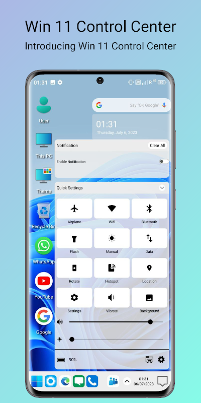 Do you want to change the look of your Android phone to look like a desktop or computer monitor? Get Win 11 Epic Launcher that is inspired by computer desktop! This is the best personalization & the best Android launcher app for you. Users of Win 11 or Win. 10 are familiar with how the desktop is structured and we hope by using similar interface on your phone and computer monitor, you can be more productive and efficient when you access your phone.