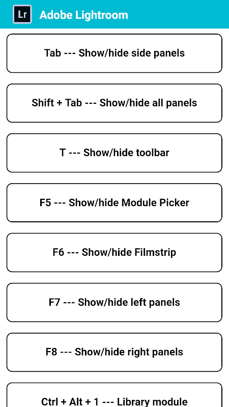 • Adobe Lightroom Shortcut