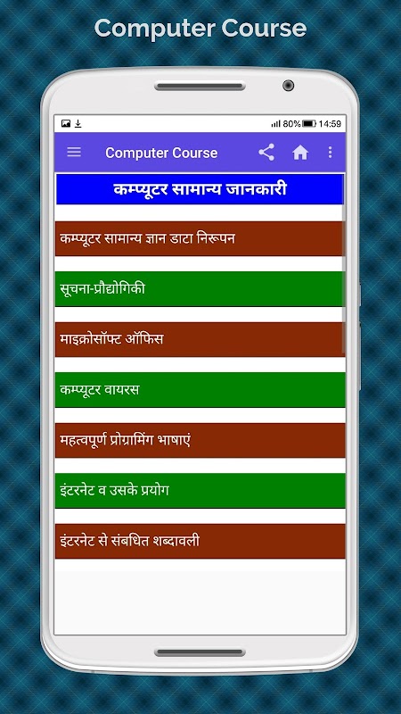 Computer Course Hindi Application covers following important topics: