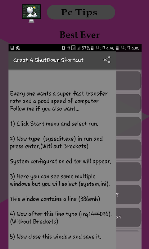 PC tips and Guide has all basic and advance tips and guide line for PC user and ethical hacking tricks. PC tips and Guide has all Commands used in cmd. It has Shortcut keys of PC programs.PC tips and Guide has a users friendly interface. Users can handle Computer according to here Desire easily, Manage Windows operations Handle Customization of computer or Windows, Easy to Use Application with Step by Step Guide for Computer.