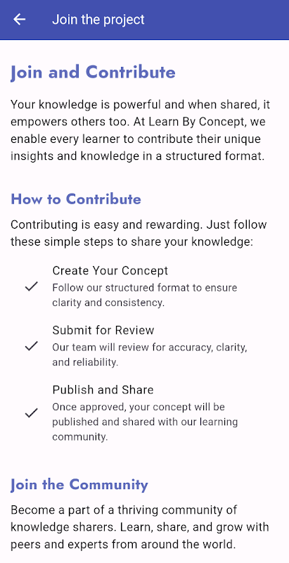 การเรียนรู้ตามแนวคิด: เราเชื่อในประสิทธิผลของการเรียนรู้ตามแนวคิด แนวทางการศึกษาของเรามุ่งเน้นไปที่การแบ่งหัวข้อที่ซับซ้อนออกเป็นแนวคิดที่สามารถจัดการได้ แต่ละแนวคิดได้รับการจัดโครงสร้างเพื่อให้ตัวอย่างเชิงปฏิบัติ คำอธิบายที่ชัดเจน และการเข้าถึงแหล่งข้อมูลเพิ่มเติม