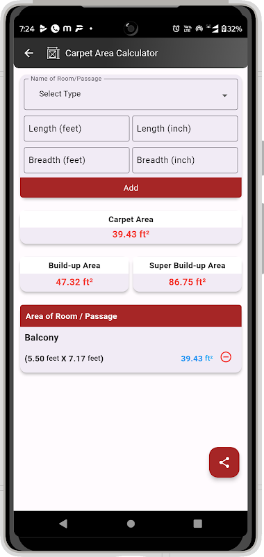 พื้นที่พรม, พื้นที่ที่สร้างขึ้น, เครื่องคำนวณพื้นที่ Super Built-Up