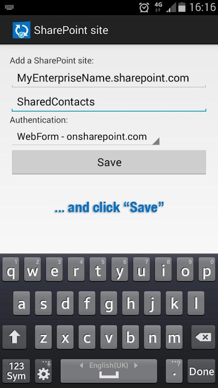 • Save and connect to multiple SharePoint sites and contact lists;