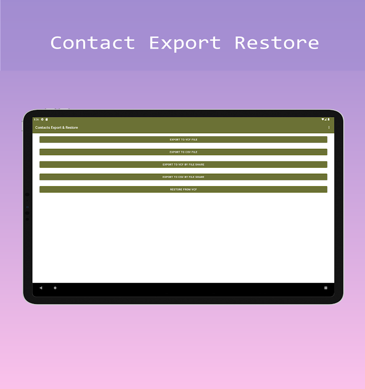 แอพสำรองข้อมูลอย่างง่ายที่ช่วยให้คุณส่งออกผู้ติดต่อเพื่อกู้คืนในโทรศัพท์เครื่องอื่นหรือเพื่อความปลอดภัย "ไม่ต้องลงชื่อเข้าใช้ ไม่มีบัญชี ไม่มีการเปิดใช้งาน เพียงส่งออกผู้ติดต่อของคุณในรูปแบบสากลให้กับตัวคุณเองหรือผู้อื่นผ่านแอพใดๆ ก็ตามที่ใช้ไฟล์แนบหรือบันทึกไฟล์ในที่จัดเก็บในเครื่อง การส่งออกผู้ติดต่อจากโทรศัพท์ของคุณไม่จำเป็นต้องซับซ้อน .