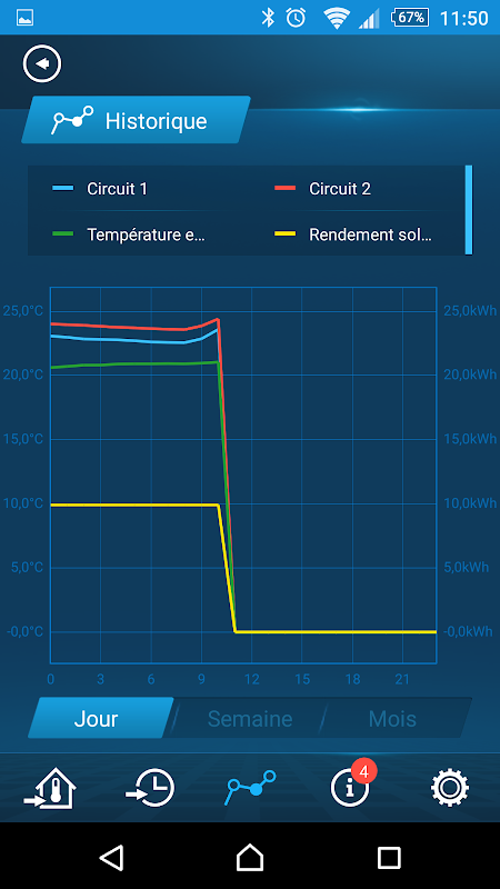 - การแสดงผลกราฟิกของค่าระบบเช่นอุณหภูมิภายนอกอุณหภูมิห้องผลผลิตพลังงานแสงอาทิตย์ตามวัน / สัปดาห์ / เดือน
