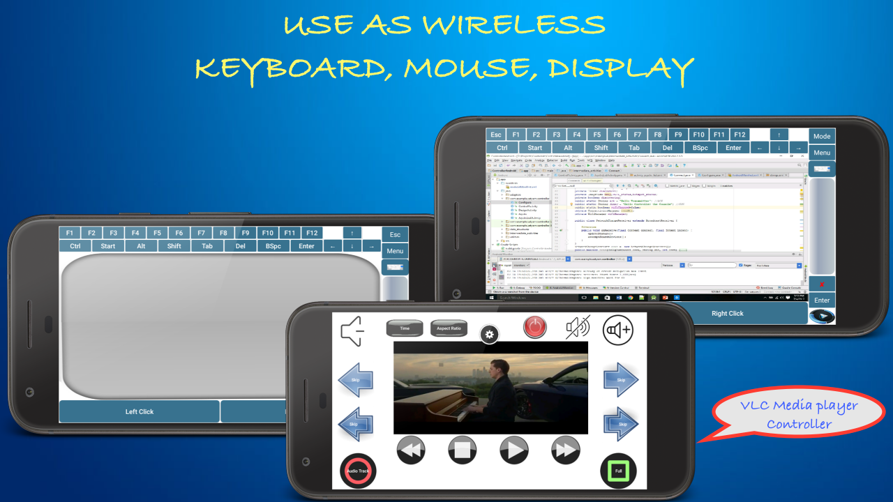 • ช่วยให้อุปกรณ์ Android สามารถใช้เป็น คีย์บอร์ด/เมาส์ไร้สาย