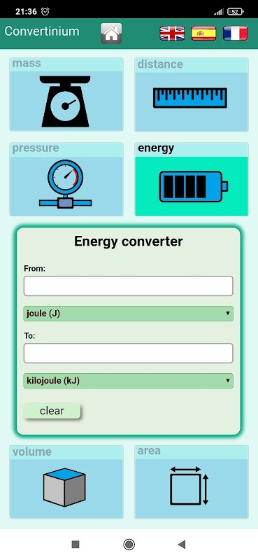 Convertinium contains 12 conversion categories and over 240 units of measurement.
