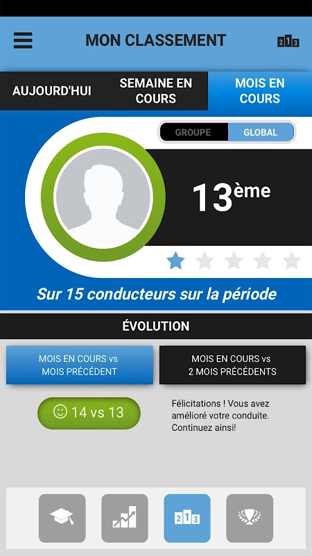 • Eco-Driving: ตามวิวัฒนาการของคะแนนการขับรถของคุณการจัดอันดับและผลของความท้าทายที่คุณอยู่