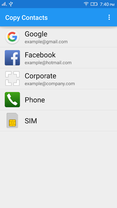 คัดลอกหรือย้ายที่ติดต่อของคุณจากบัญชีหนึ่งไปยังอีก ตัวอย่างเช่นจากซิมการ์ดหรือโทรศัพท์ไปที่ Google, จาก Facebook * เพื่อองค์กรของคุณ (Exchange) จาก Google เพื่อซิม, ฯลฯ ...