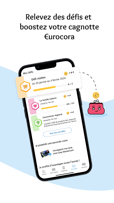 ด้วยบัตรของคุณ คุณจะได้รับรางวัล 100% ของการซื้อของคุณ: ใช้จ่าย 1 ยูโร = 1 คะแนนสะสม แสดงทุกครั้งที่คุณไปที่จุดชำระเงินหรือบน cora.fr