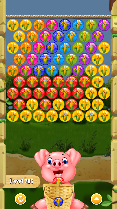 Create chain reactions and shoot down the corn balls.
