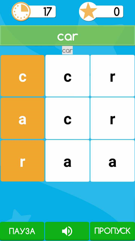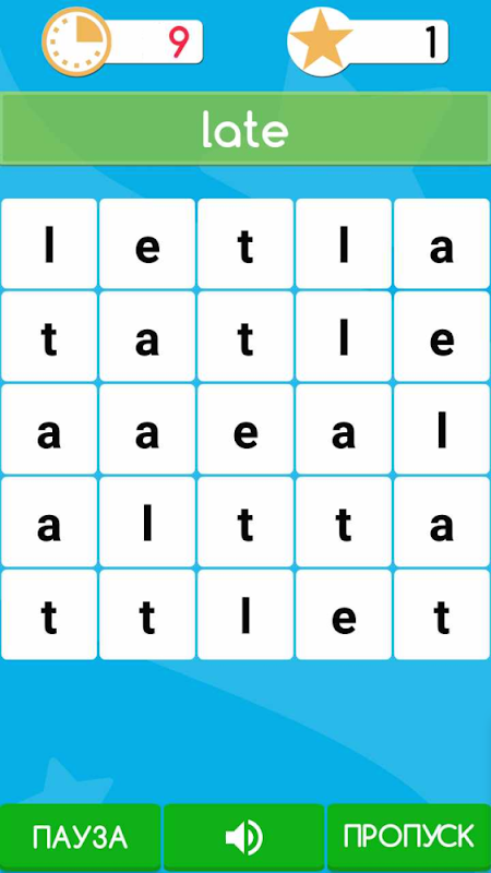 На экране высвечивается слово которое необходимо найти в таблице. Чем быстрее вы это слово найдёте тем больше очков получите.
