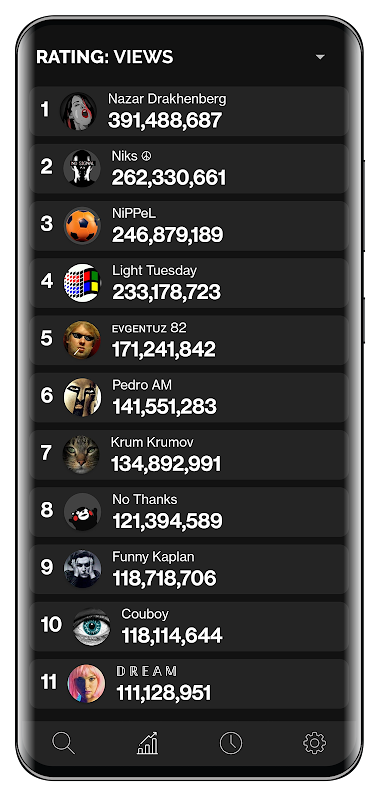 • ดูการจัดอันดับและสถิติของช่องด้านบน