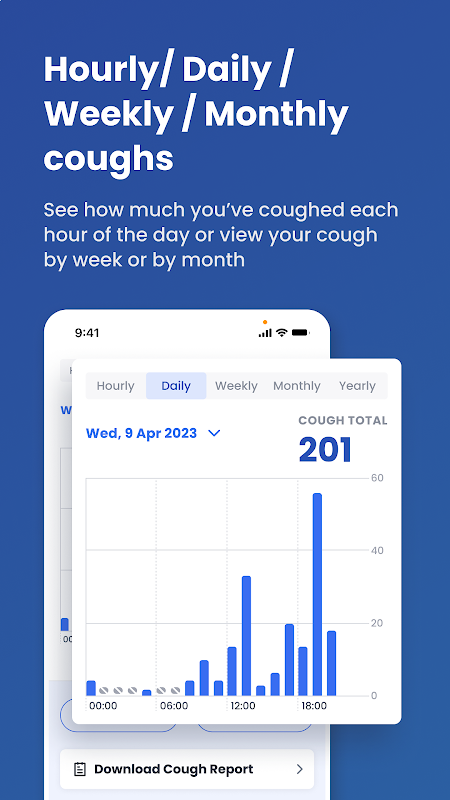 CoughPro ได้รับการออกแบบใหม่ตั้งแต่บนลงล่างเพื่อให้เร็วขึ้น จับอาการไอได้มากขึ้น และให้ข้อมูลเชิงลึกเกี่ยวกับการไอของคุณมากขึ้น เพื่อให้คุณสามารถจัดการกับอาการไอได้ดีขึ้น