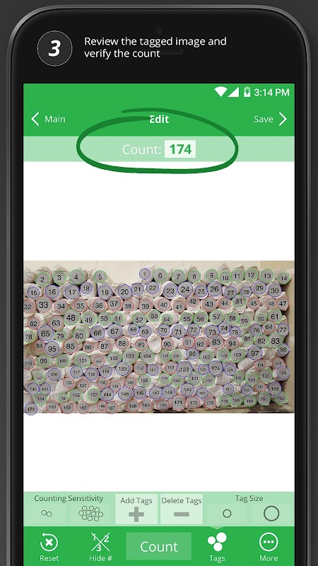 CountClusters counts more specialized items than the other apps in the CountingThings family of apps. Using advanced computer vision technology, CountClusters tags each counted item with a number so you can easily verify and document the results.