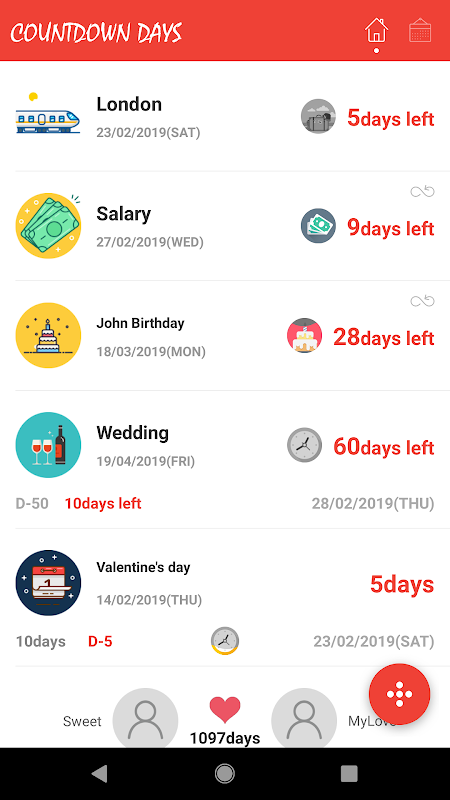Countdown timer, with widget to remember event, birthday, baby, salary, love...