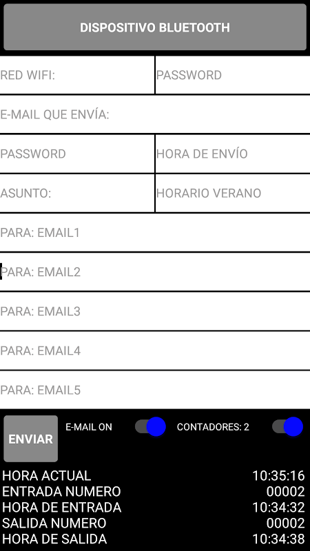 แอปพลิเคชั่นที่เข้ากันได้กับ Car Counter Card สร้างขึ้นเพื่อนับเหตุการณ์นอกจากนี้ยังสร้างฐานข้อมูลพร้อมเวลาที่นำเสนอเหตุการณ์ตัวนับสำหรับหนึ่งทิศทาง 2 ตัวนับสำหรับสองทิศทางหรือตัวนับสำหรับความรู้สึกทั้งสองข้อมูลนี้จะถูกส่ง โดยบัตรเคาน์เตอร์รถทางอีเมลพร้อมที่อยู่สูงสุด 5 ที่อยู่ในเวลาที่กำหนดหลังจากนี้ระบบจะรีสตาร์ทวงจรสำหรับกิจกรรมใหม่