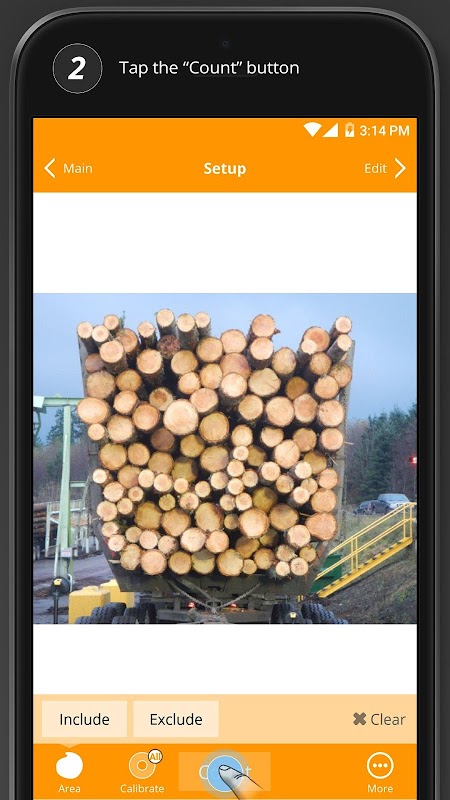 The CountLogs app uses Machine Learning technology to identify and count logs.