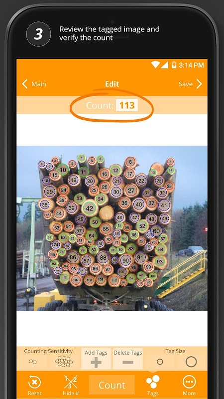 Using advanced computer vision technology, CountLogs tags each counted log with a number so you can easily verify and document the results.