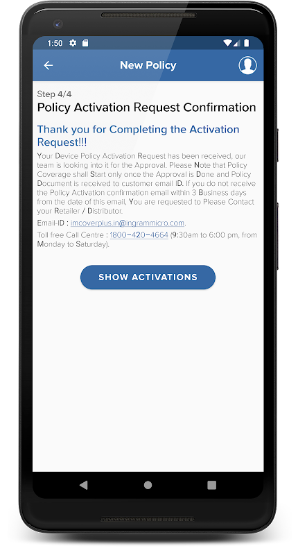 • Digital Policy Activation Process together with SMS Confirmation
